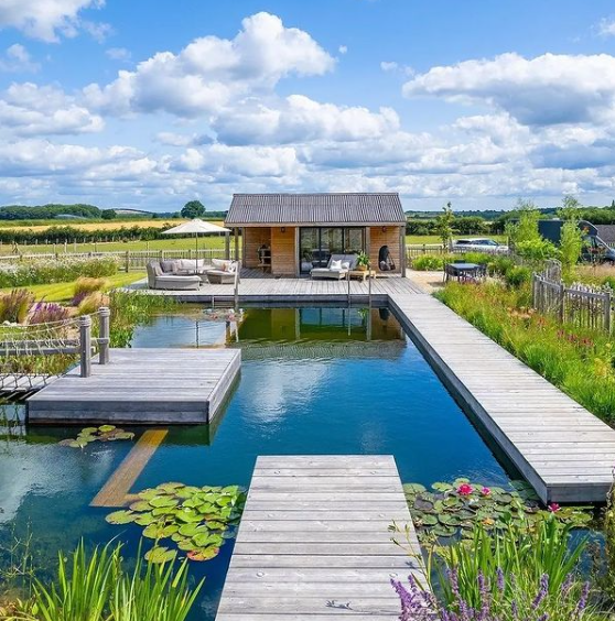 This concept is growing in popularity due to the absence of chemicals used to purify the water. These pools are built in two parts: the main swimming area and the Garden area. In this pool, the plants do all the hard work of filtering the water. To work properly, the garden area needs to be roughly one third the size of the pool. If a fish can survive in a pool, then the water is safe to swim in.