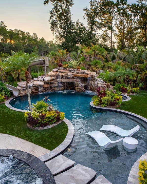 Free form pools have always been popular due to their limitless possibilities. These unique pools require more expertise to build, often needing the use of specialized tools and processes like gunite concrete. Their customizability enriches any backyard and create stunning landscapes.