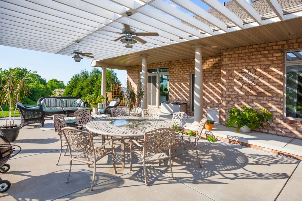 Positioned over a patio area, the pergola provides shade and architectural interest, creating an inviting environment for relaxation, dining, and entertaining. Whether crafted from wood, metal, or other materials, the pergola’s overhead structure can be customized to complement the design of the patio and surrounding landscape. With the addition of retractable shades, curtains, or climbing plants, the pergola can further enhance privacy and comfort while adding beauty and charm to the outdoor setting.