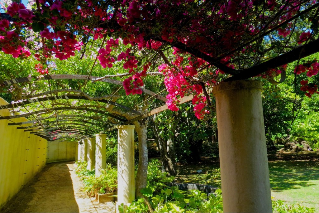 A pergola in a tropical setting embodies the essence of paradise, blending natural beauty with architectural elegance to create an idyllic outdoor retreat. Set amidst lush foliage, vibrant flowers, and towering palm trees, the pergola provides a tranquil oasis for relaxation and enjoyment. With its open-air design, the pergola allows gentle breezes to flow through, while providing partial shade from the tropical sun. Adorned with tropical-inspired decor, such as colorful textiles, rattan furniture, and exotic plants, the pergola becomes a luxurious haven where one can unwind in style.