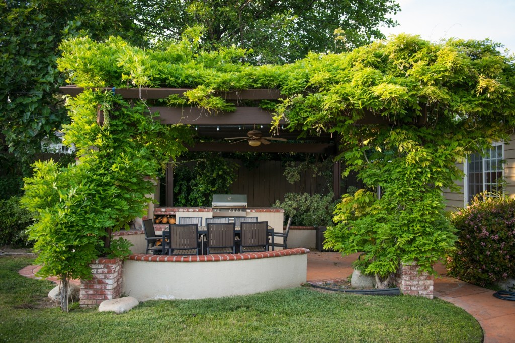 A vine-covered pergola offers a charming and natural ambiance to outdoor spaces. As the vines grow and intertwine with the structure, they provide shade, privacy, and a sense of enclosure, creating a cozy and inviting atmosphere. Additionally, the lush foliage adds beauty and visual interest, transforming the pergola into a picturesque focal point in the garden or patio area. With various vine options available, such as grapes, wisteria, or climbing roses, homeowners can customize their pergola to suit their aesthetic preferences and climatic conditions, making it a versatile and timeless addition to any outdoor setting.