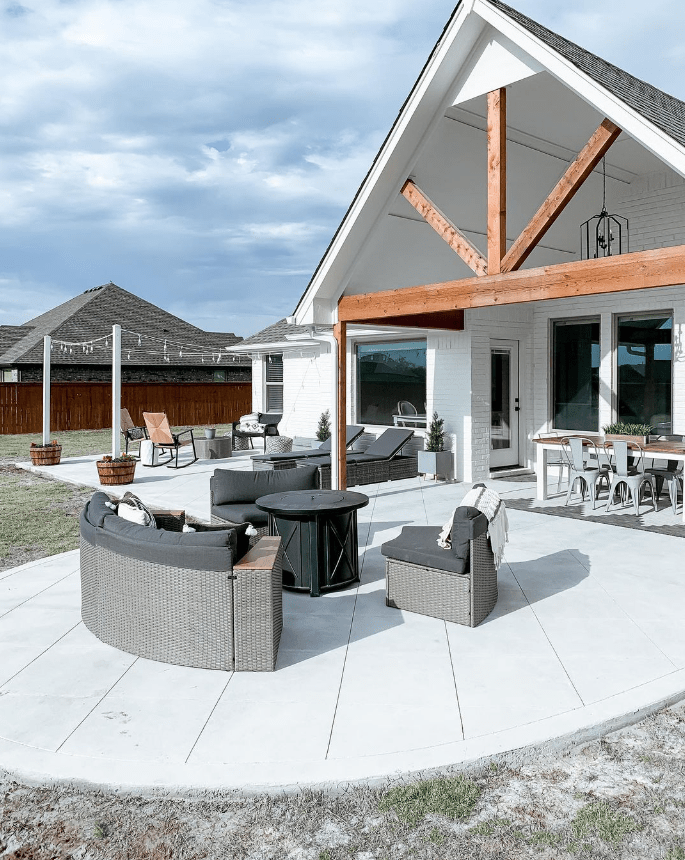 Then endless customization possibilities of a poured concrete patio offers a versatile and durable outdoor living space solution, perfect for those seeking simplicity and functionality. Its seamless surface provides a clean and modern aesthetic that complements a variety of architectural styles.