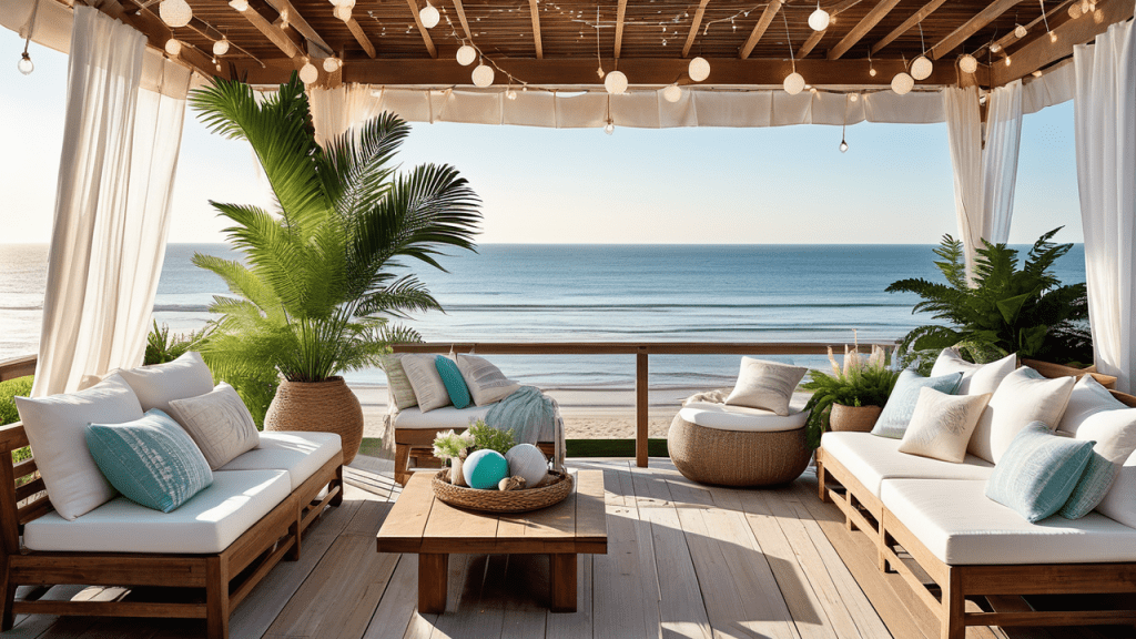 - Coastal: Light colors, airy fabrics, and nautical decor are key. Think white or pastel furniture, blue accents, and lots of potted plants.
