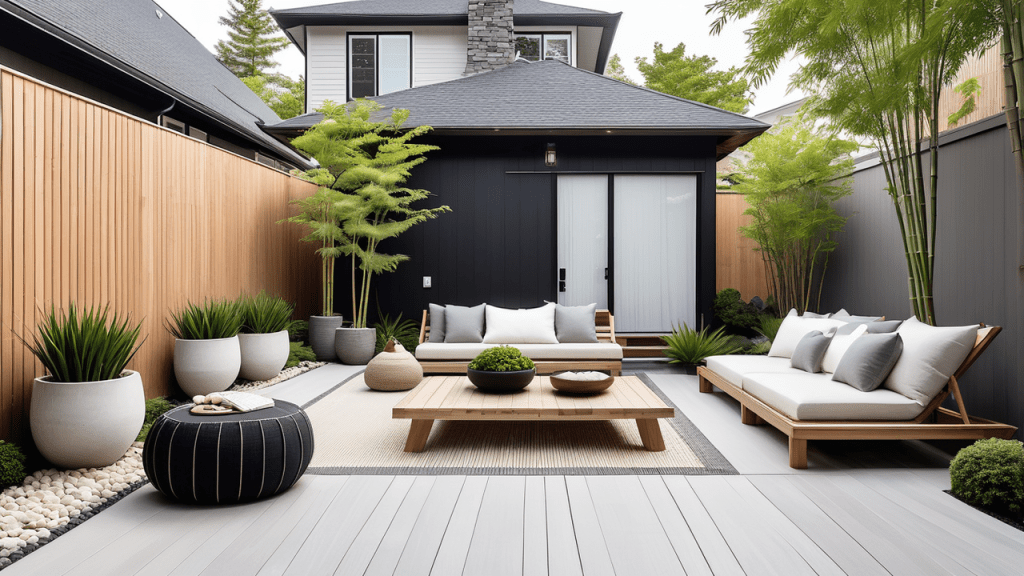 - Modern: Clean lines, neutral colors, and minimalist furniture define this style. Use materials like composite decking, metal railings, and sleek outdoor furniture.