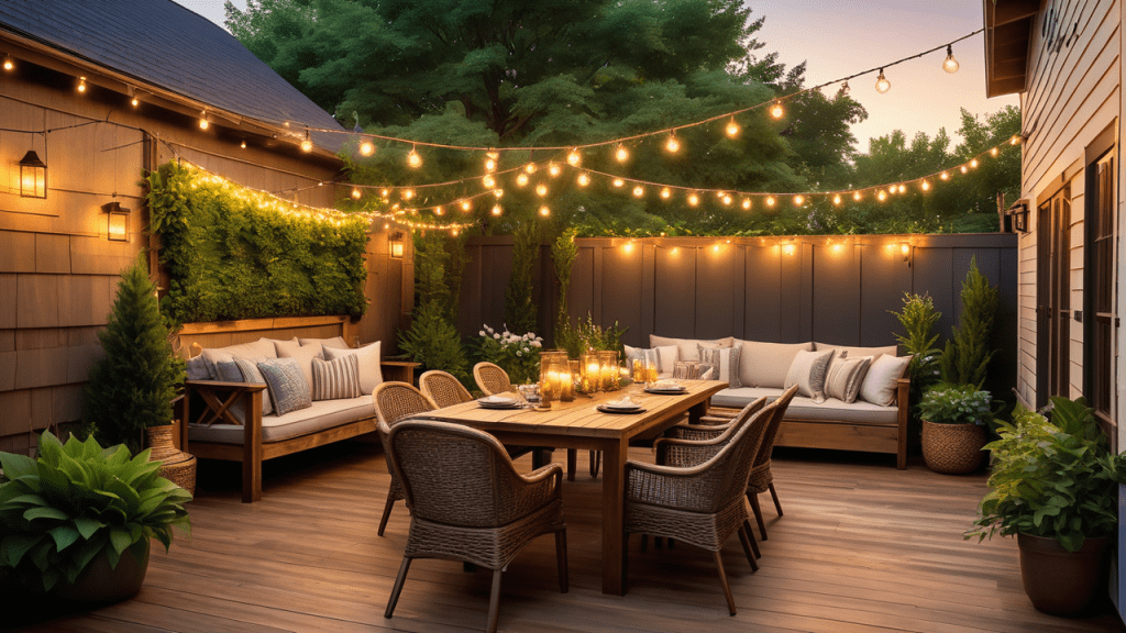 - Lighting: Good lighting is essential for evening use. Combine string lights, lanterns, and built-in fixtures to create the perfect ambiance.