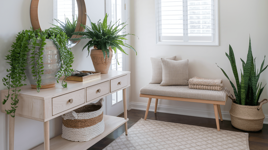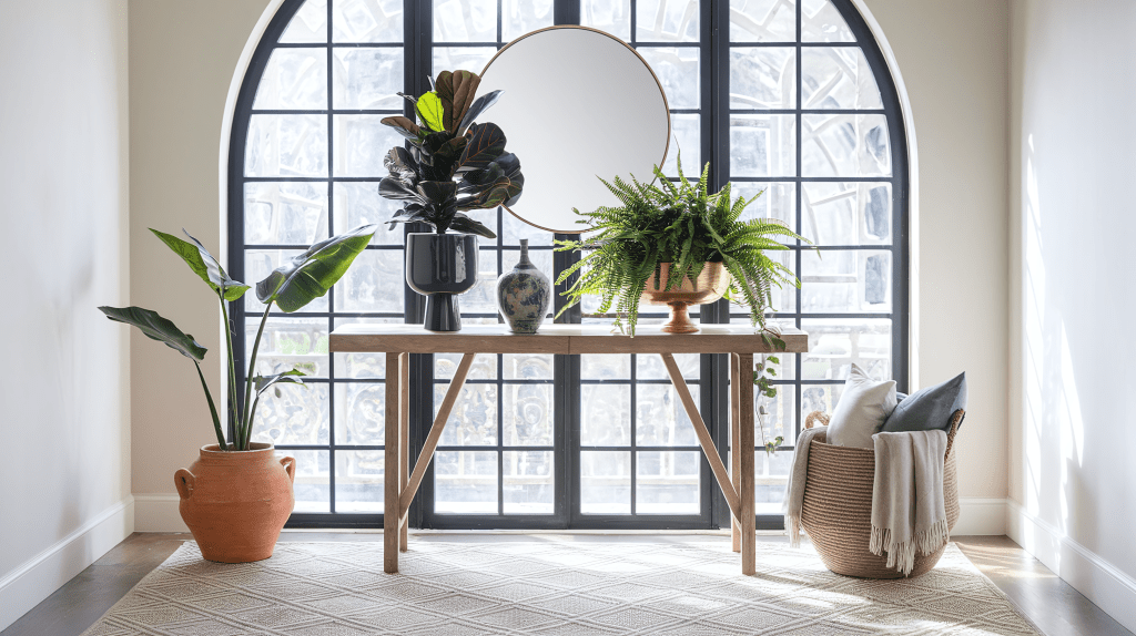 The entryway sets the tone for your home, and adding plants instantly makes it feel more inviting. A console table or floating shelf provides a great space to layer greenery with other decorative accents.