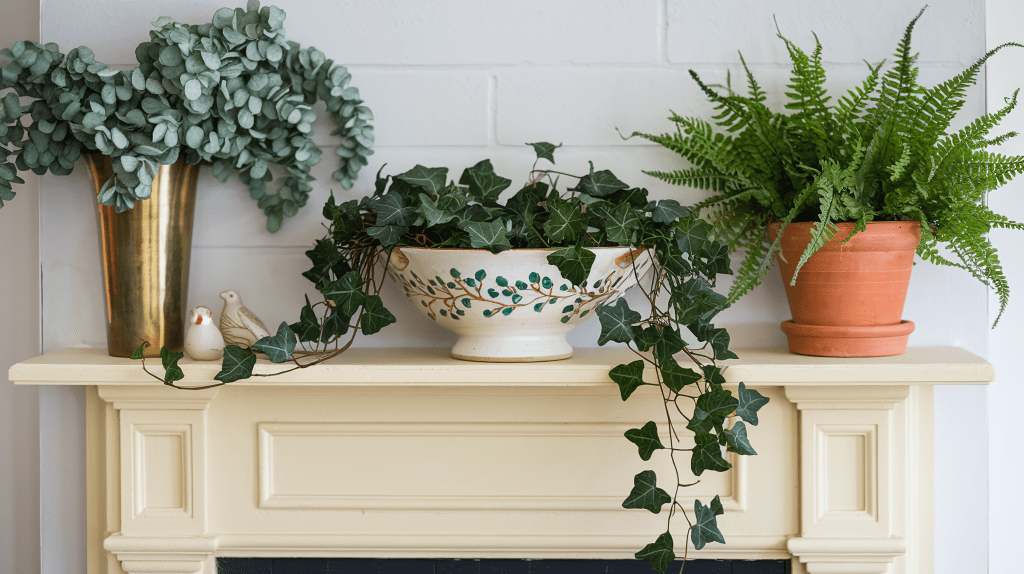 Sideboards and mantels offer another opportunity to incorporate greenery into your decor. A symmetrical display with two statement plants on either end creates a polished, elegant look. For a more organic approach, mix varying heights and textures, blending plants with decorative objects like candlesticks, vases, and books.