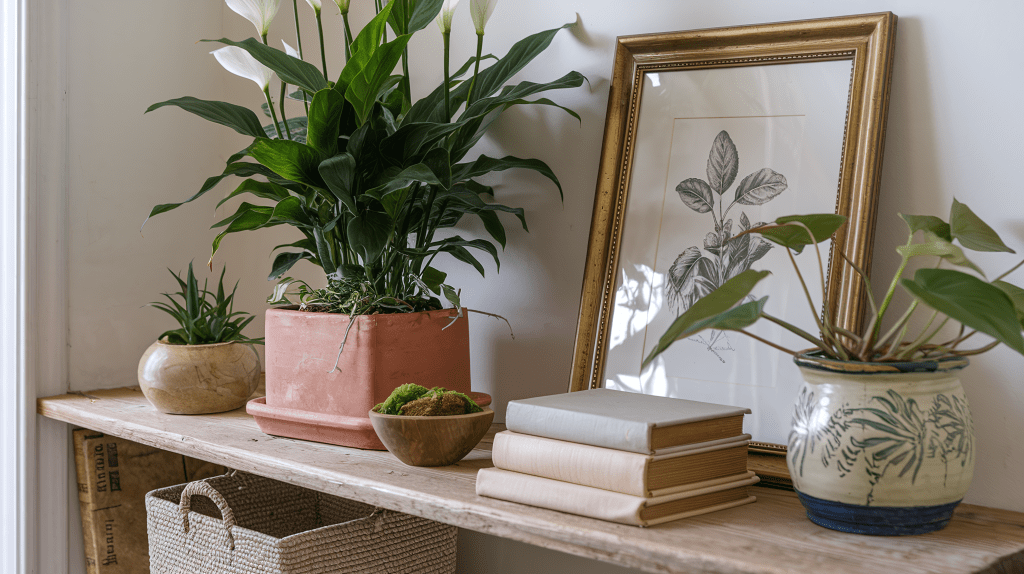 Consider placing a taller plant, like a peace lily or bird of paradise, on one end, then filling in the space with smaller pots containing ferns, snake plants, or succulents. The result is an effortlessly elegant look that brings the beauty of nature indoors.